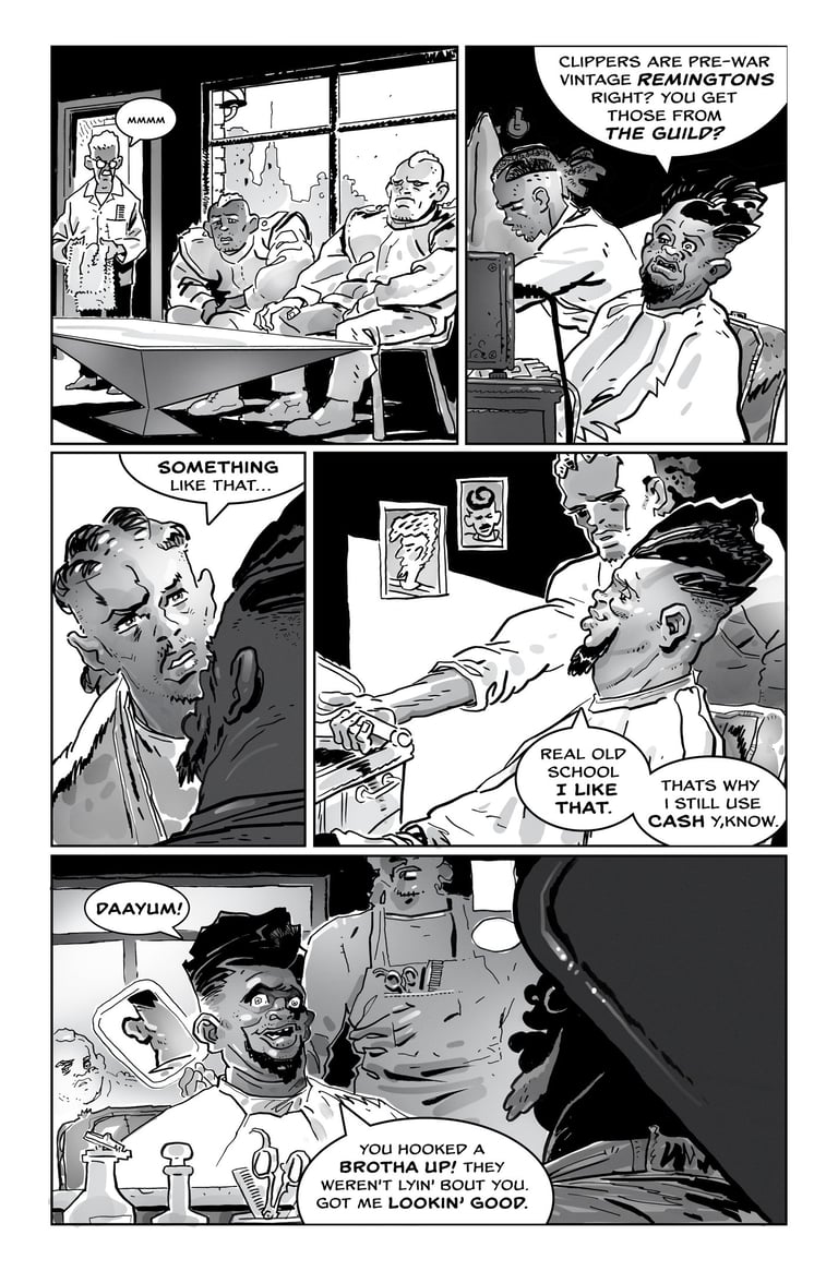 Illustrations by Alexaksandar Bozic. The Barber, all images and text © 2025 Mike Kelley